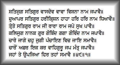 Bhai Gurdas,was born at Goindwal between 1543-553AD, son of Datar Chand the younger brother of Guru Amardas. On the death of Guru Ramdas, he returned to Amritsar and presented himself before Guru Arjan. He became his scribe and wrote the Guru Granth Sahib. The compilation of Guru Granth Sahib was completed in 1604. It took almost 11 years to complete this task. Sometime later, Bhai Gurdas wrote the 40 Vaaran, these were the ‘kunji’ or key to knowing the Guru Granth Sahib which is locked. In the 1st Var, the last Pauri 49, Bhai Gurdas brought divine knowledge of a ‘unique mantra’ which when recited in mind continuously in Time brings one to unite with The Lord.